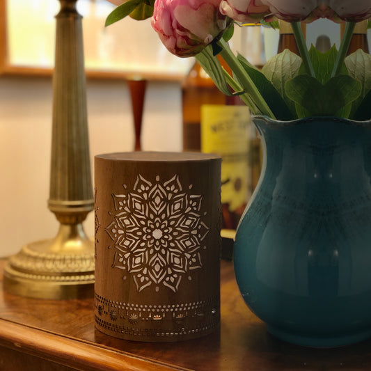 Extra cozy (No Glass) -Floral detail - Natural wood cover - For those who already have one of my lanterns (lantern cozies)