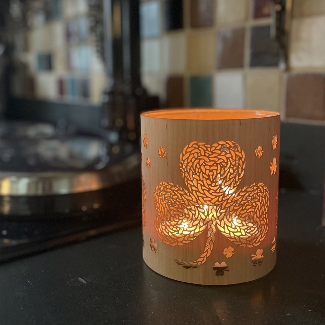 It's the perfect size to sit on a table or mantle, and its soft glow creates a warm and inviting ambiance that's sure to delight as it did Eileen, the recipient of the original shamrock lantern.