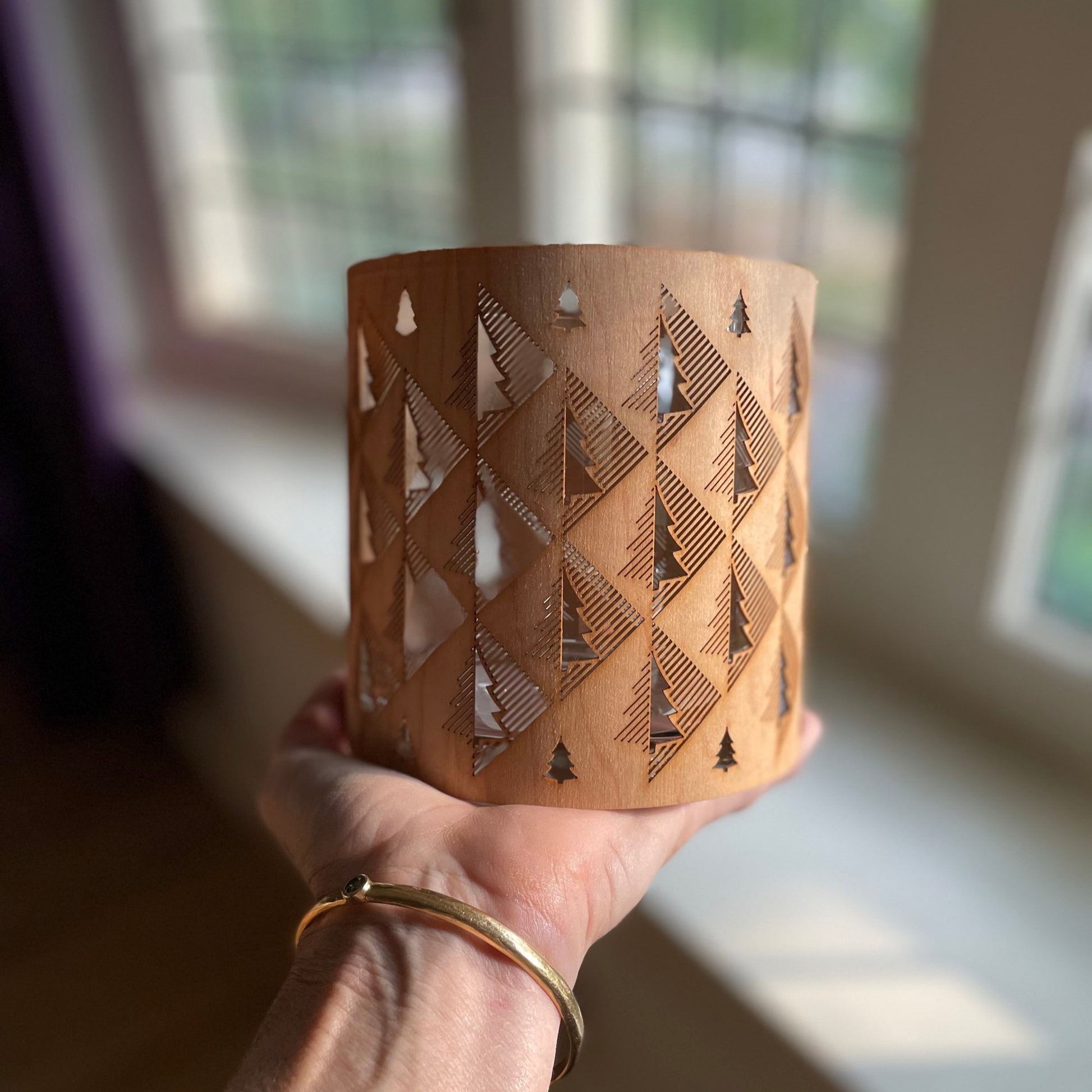 Introducing our Modern Fir Tree Candle Lantern, the perfect addition to your holiday decor or year-round rustic charm. This elegant design features a repeating pattern of fir trees, evoking the feeling of a snowy forest. It's perfect for Christmas, but also versatile enough to complement any cabin, cottage, or camp-inspired space.