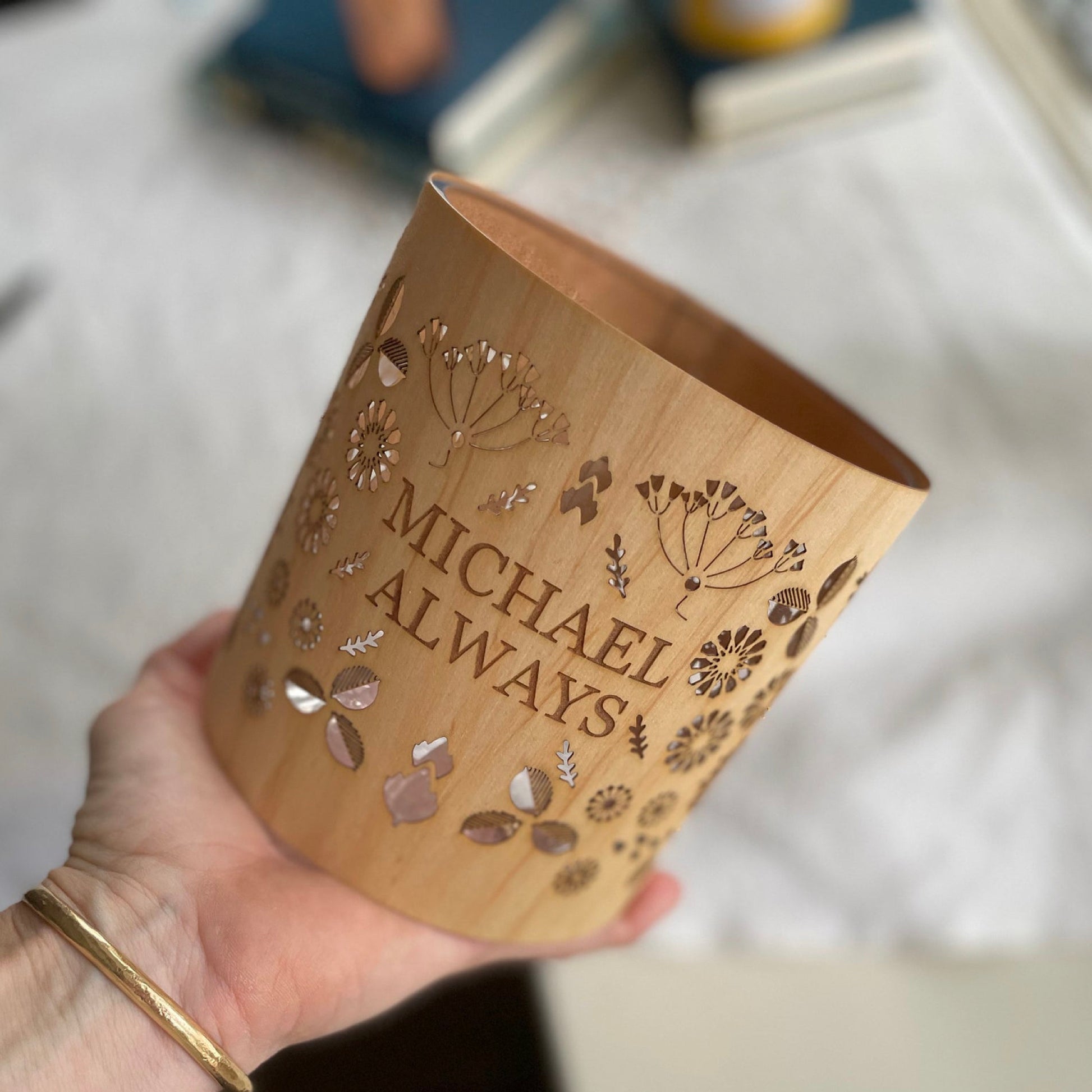 This floral lantern can also be personalized which makes a very meaningful gift. You can purchase the floral lantern without customization here.