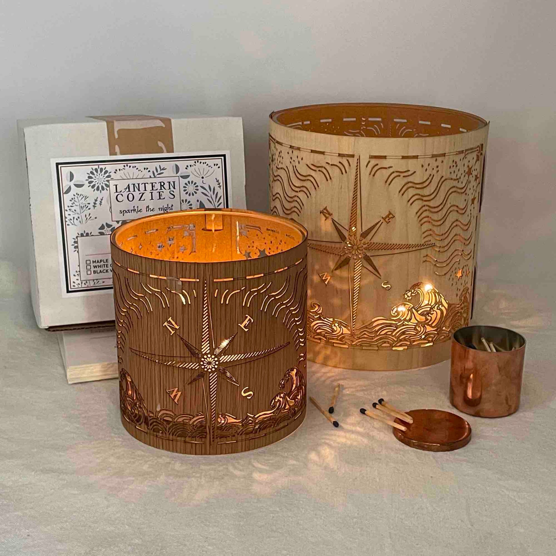 Celebrate your inner wanderlust with my Compass Rose, nautical themed lantern. The soft glow from this lantern is perfect for an evening of dreaming about future trips or reflecting on wonderful memories from voyages past. The day is approaching when the world will be your oyster once again